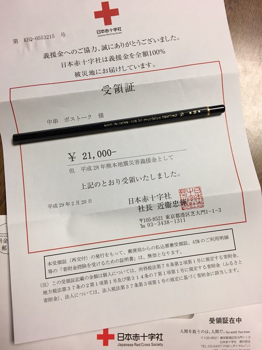 10,000円を、日本赤十字社の熊本地震義援金 に寄付、